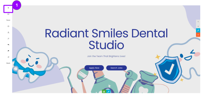 In order to start editing your Landing Page, you have several options running down the left-hand side of the page: