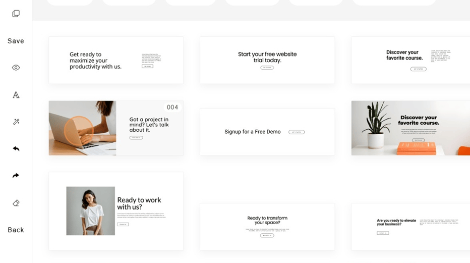 From here you can browse through all of the sections listed at the top, and options of content blocks available to add.