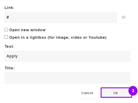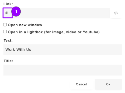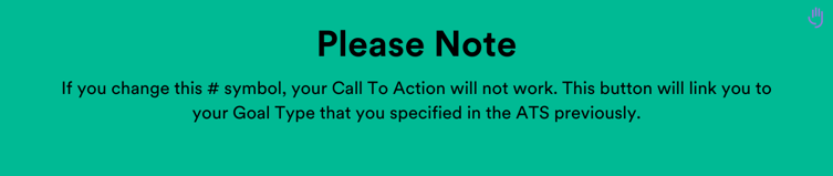 When adding a content box with a button or call to action a # will appear - leave this # if you would like this to redirect to your pre-set campaign link or this can be deleted and a URL can be pasted in here.