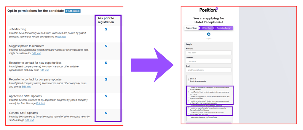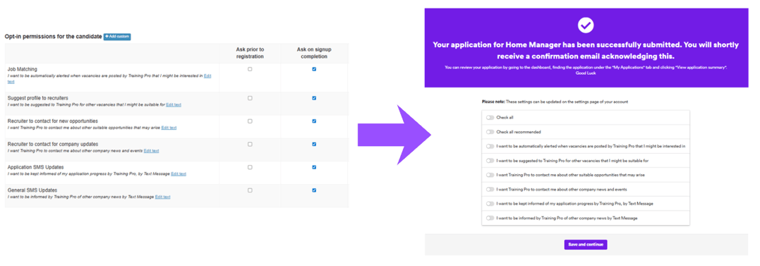Further down the page, you are presented with Opt-In permissions for candidates: