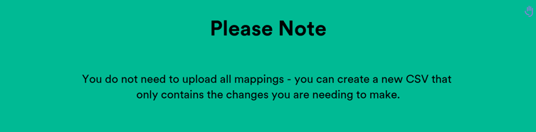 To make changes to existing mappings you will need to amend the internal id for the mapping and upload the CSV using the create/replace mappings option. New mappings can also be created on this CSV.