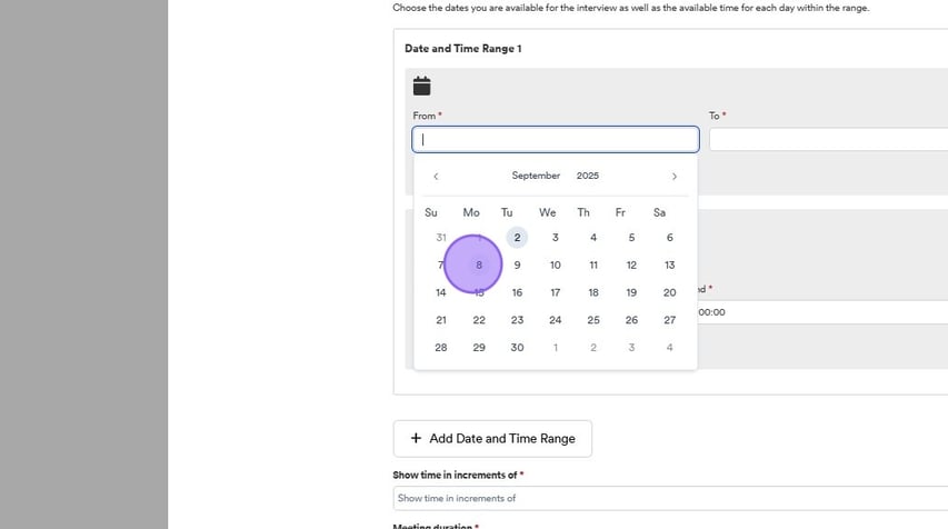- If you would like interviews available on an hourly basis, select ‘1 hour’
