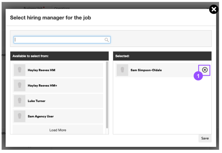 - Start by clicking on the "X" icon next to the selected user to remove them (1).