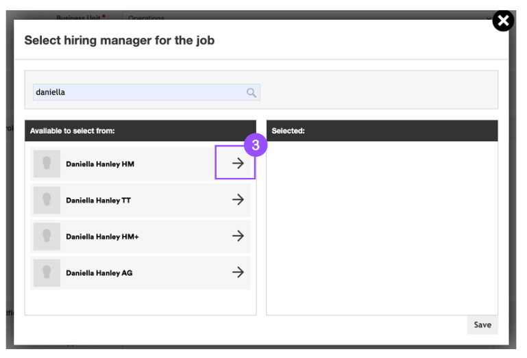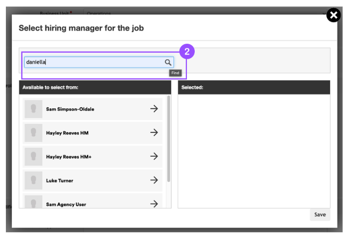 - The user’s name will now appear in the ‘selected’ box on the right-hand side.