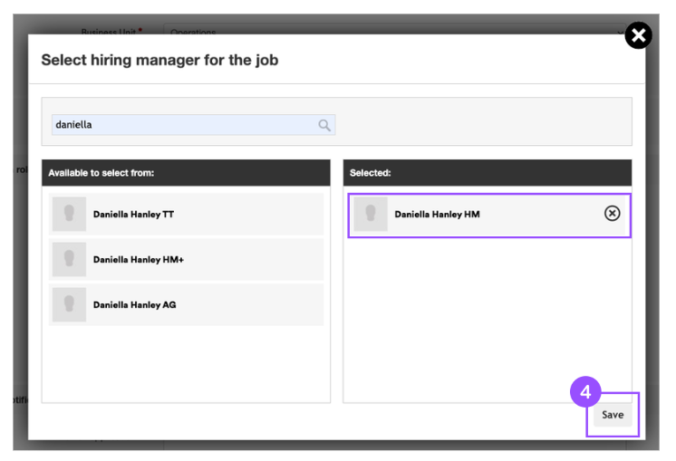 By default the Hiring Manager role is set to the user that is creating the job, meaning you will normally see the name of the user rather than ‘Super User’.