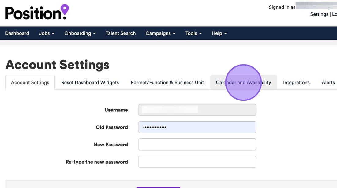 You will now be taken to the account settings page. From here click "Calendar and Availability".