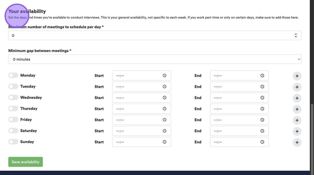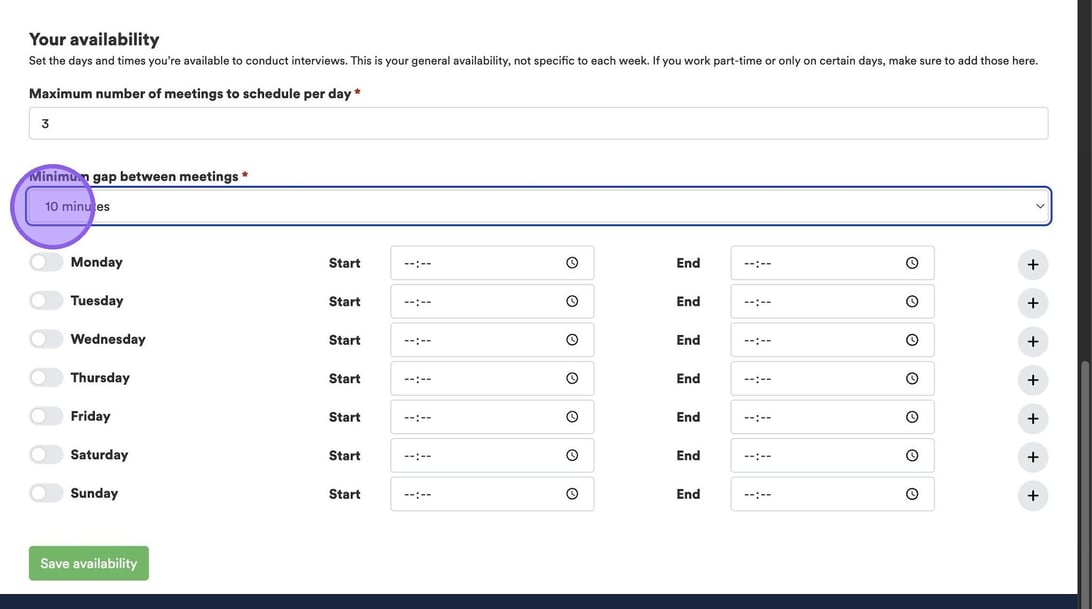 Configuring your availability, maximum number of meetings per day, and minimum gap between meetings within the ATS settings is optional, but considered best practice.