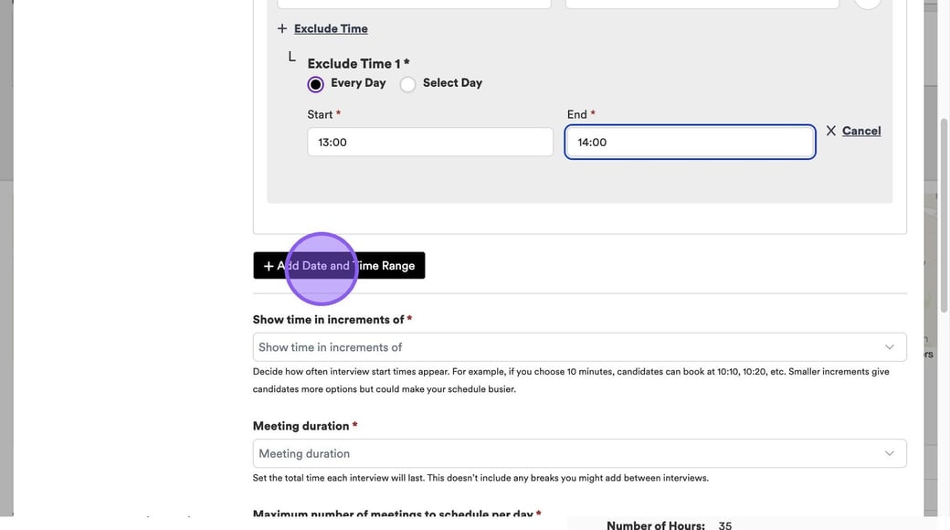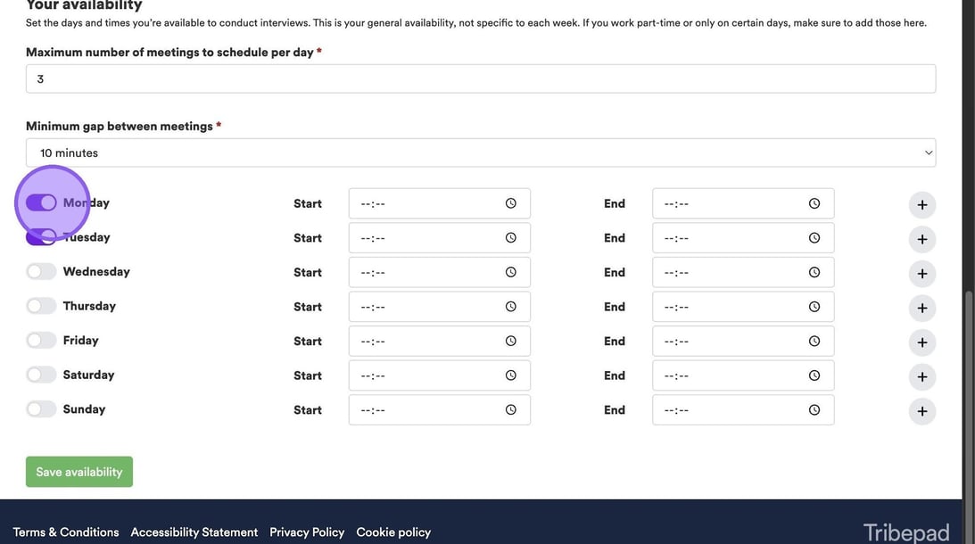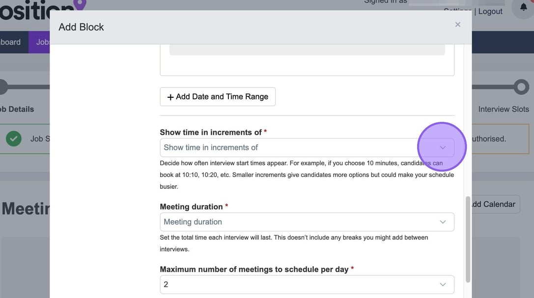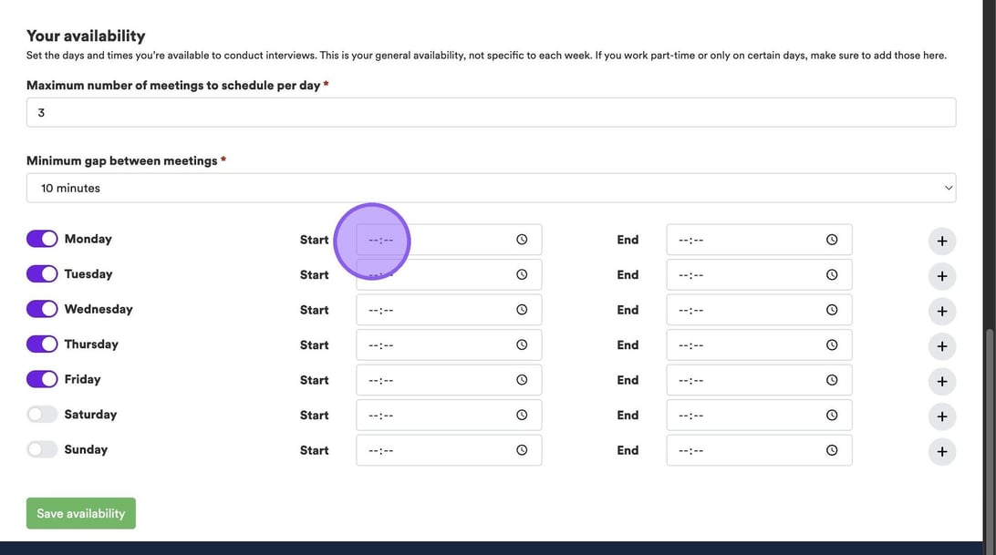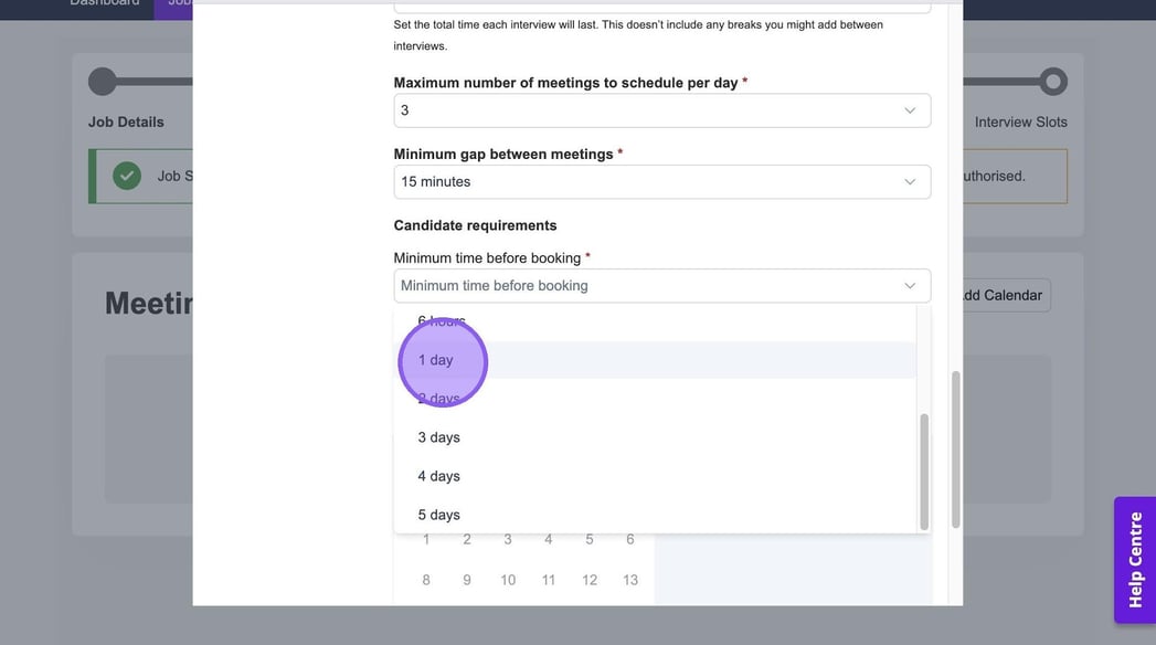 Choose the maximum number of meetings you would like to schedule per day by clicking here. This may already be pre-populated if you have already set this in your ATS settings.