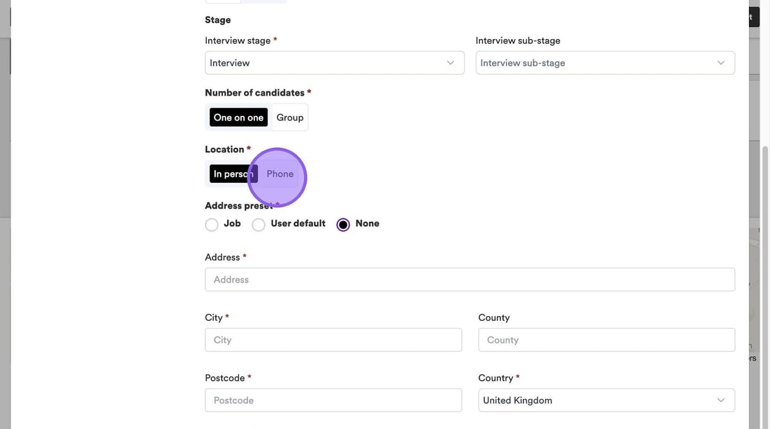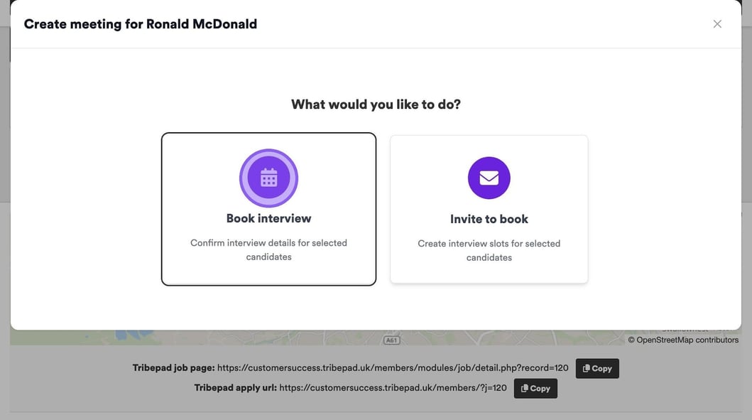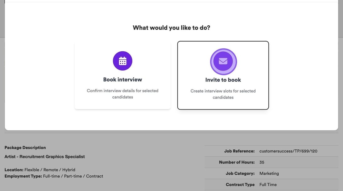 Finally, you can choose what kind of interview you wish to book for the candidate.