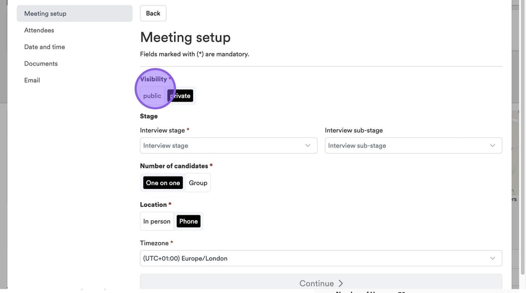 To get started, set your visibility. This refers to how you would like the interview to appear in your calendar.