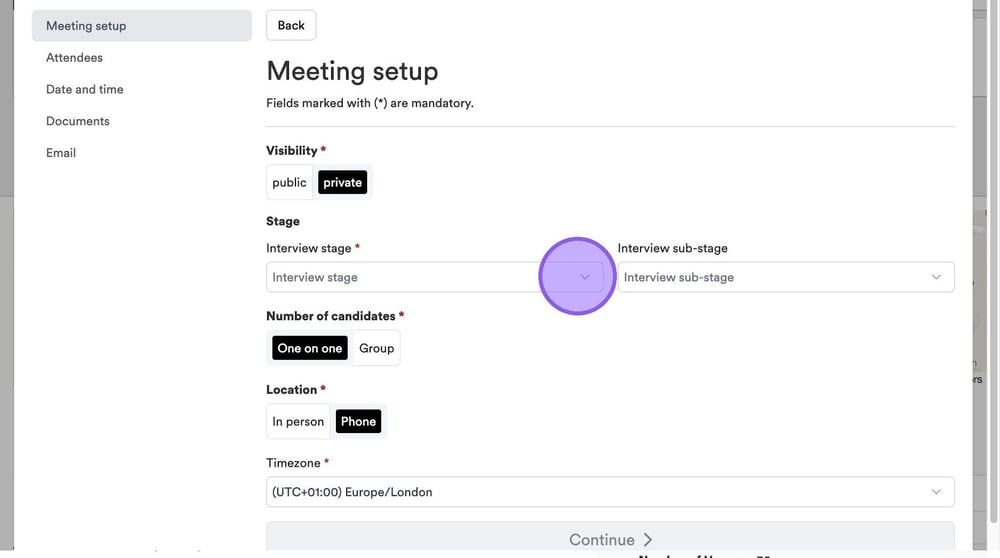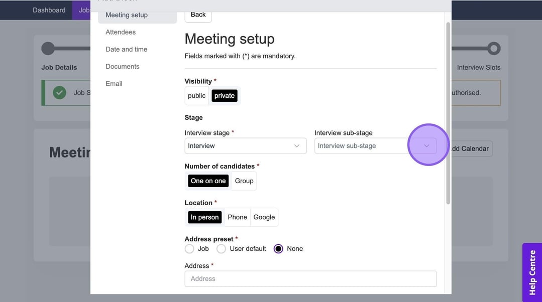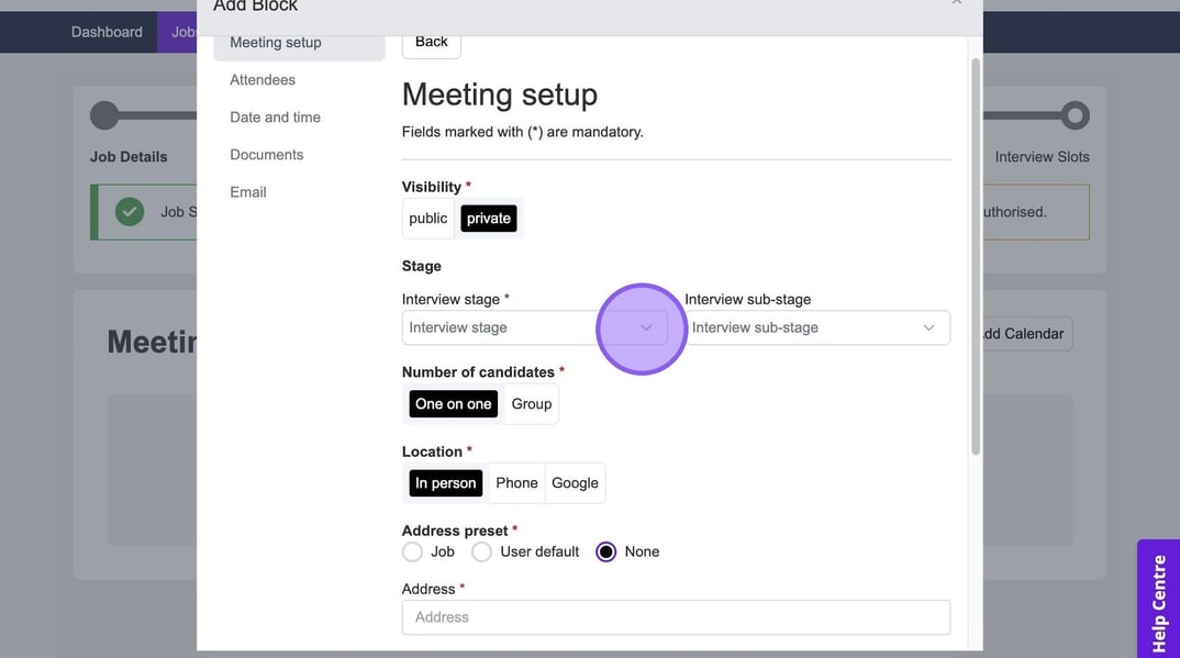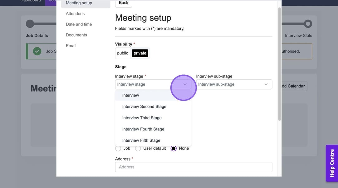 Now choose your Interview Stage, by selecting from the drop-down menu.