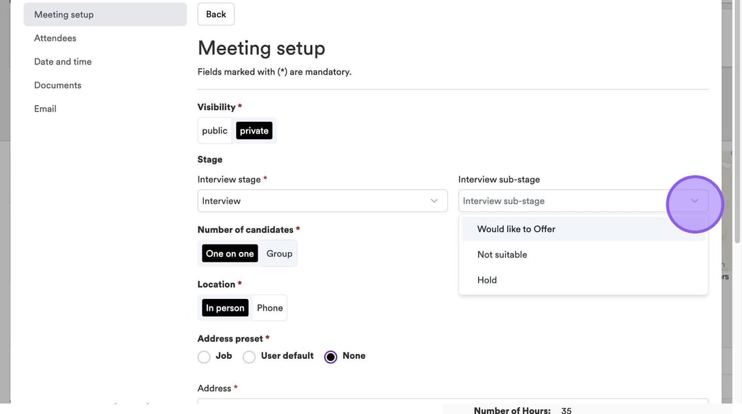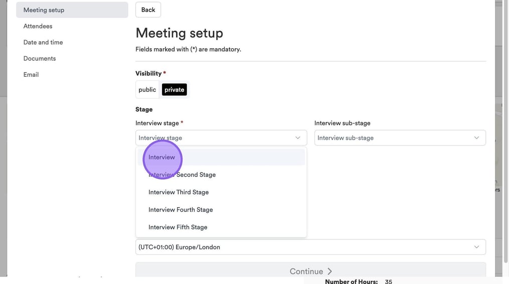 If you have set up the use of interview sub-stages you will also be able to select those from here.