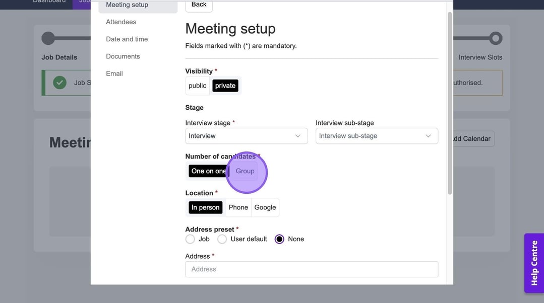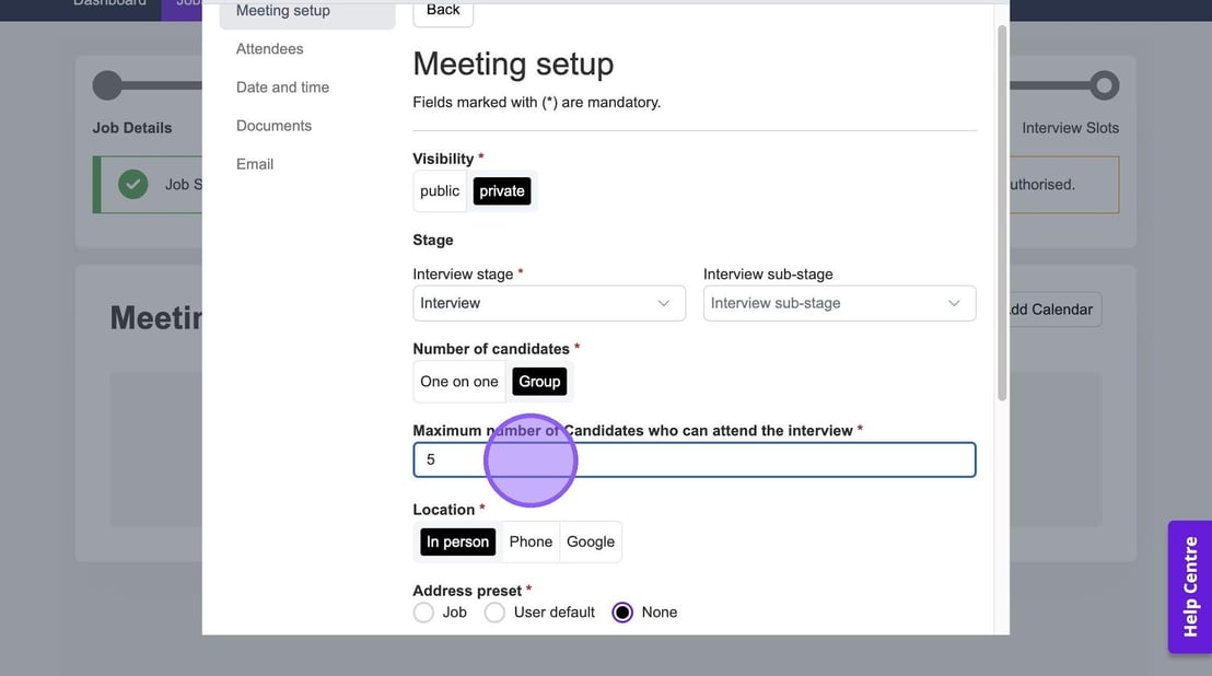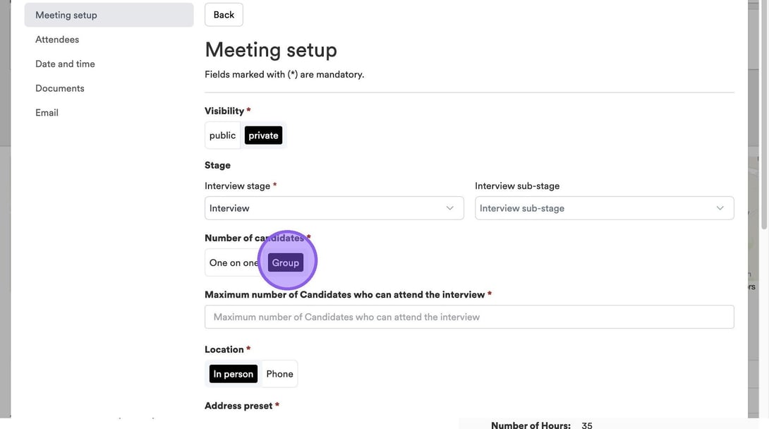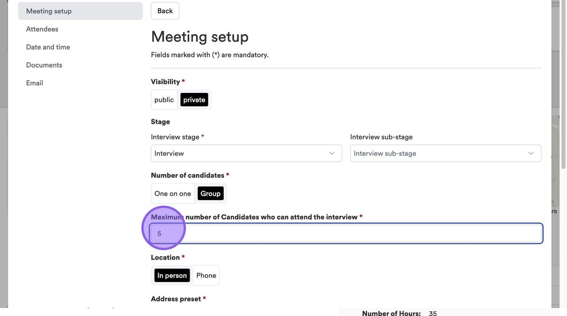 If you click on "Group" you will now see the option to set the maximum number of candidates who can attend the interview. To do this, simply click in the box and type the relevant number.
