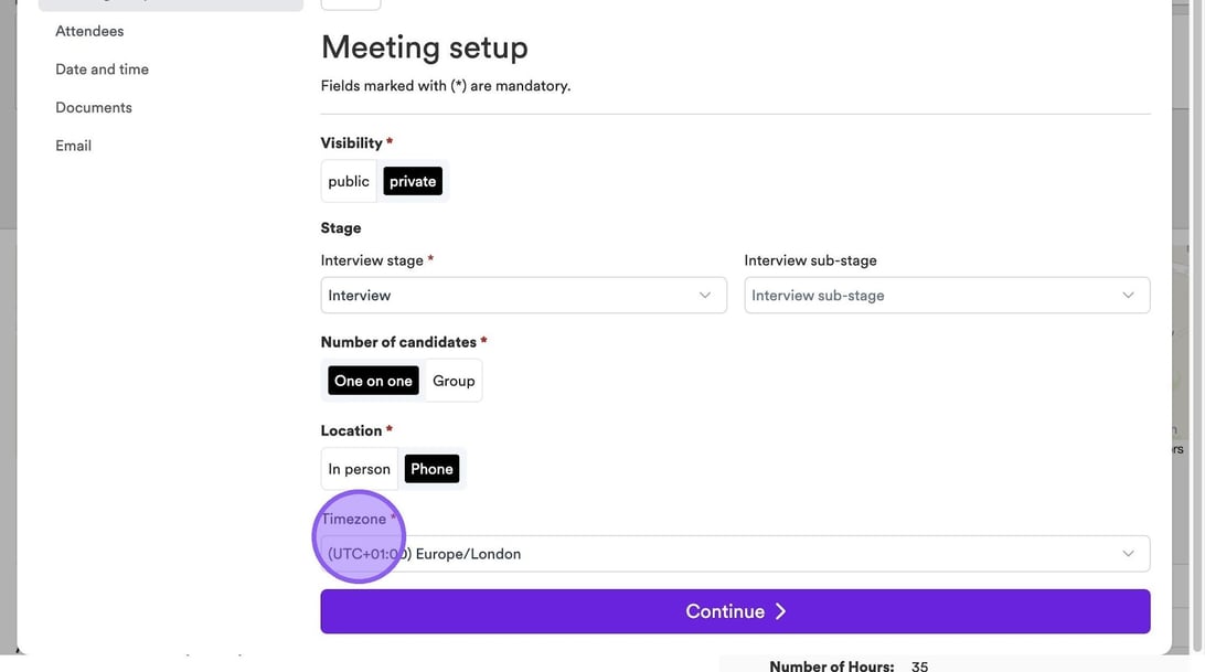 If you select the ‘Phone’ option in the location field, you will be able to select from a timezone. This is the same for the 'Google' and/or 'Teams' option also.