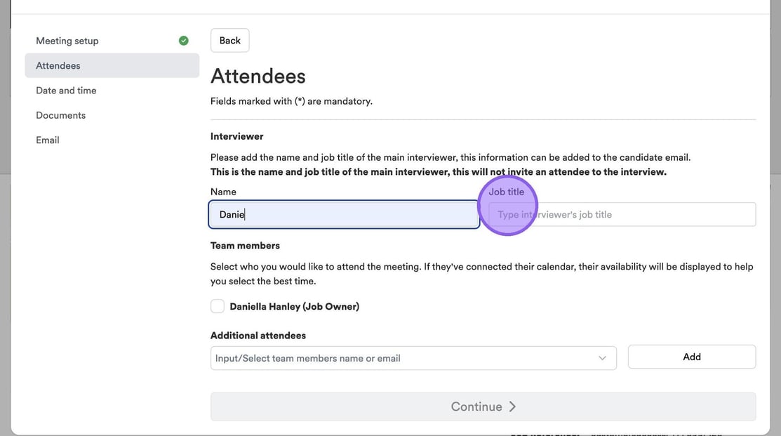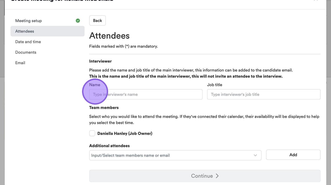 You will now be taken to the "Attendees" part of this process. To get started type in the name of who will be conducting the interview.
