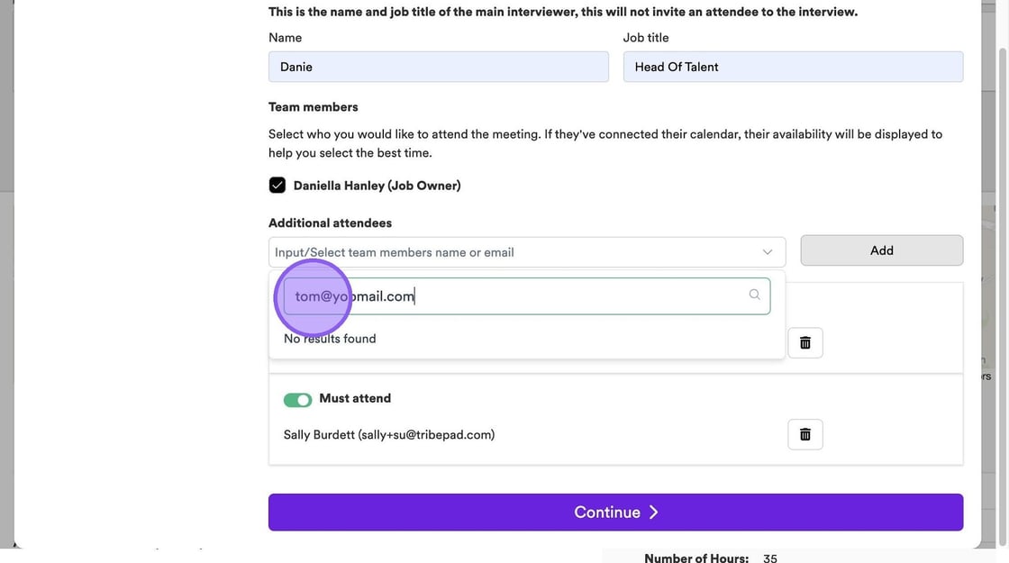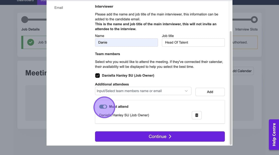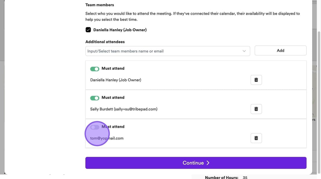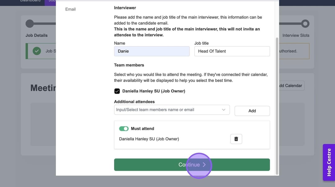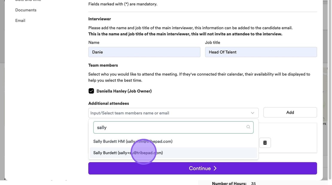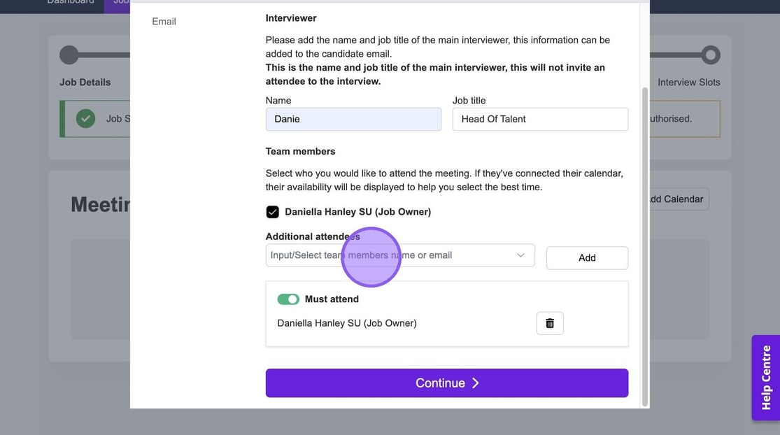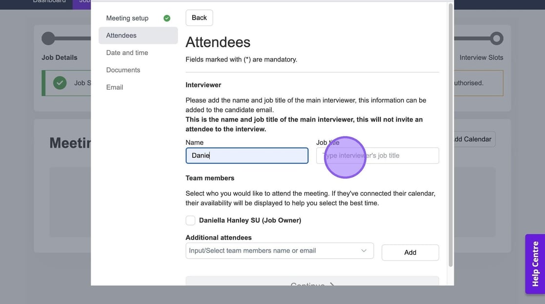 It's now time to add in any additional team members who will be attending your interview. If other colleagues have connected their calendar, you will see them here and be able to select a check box next to their names.