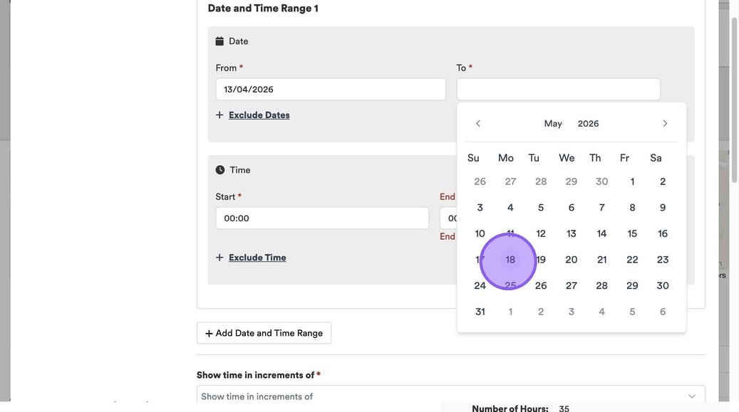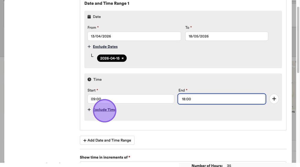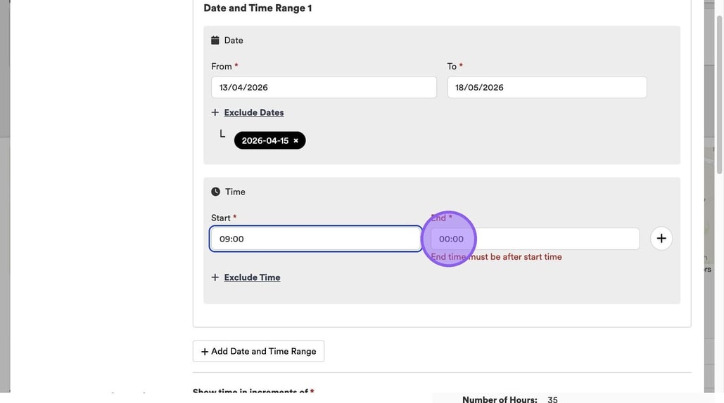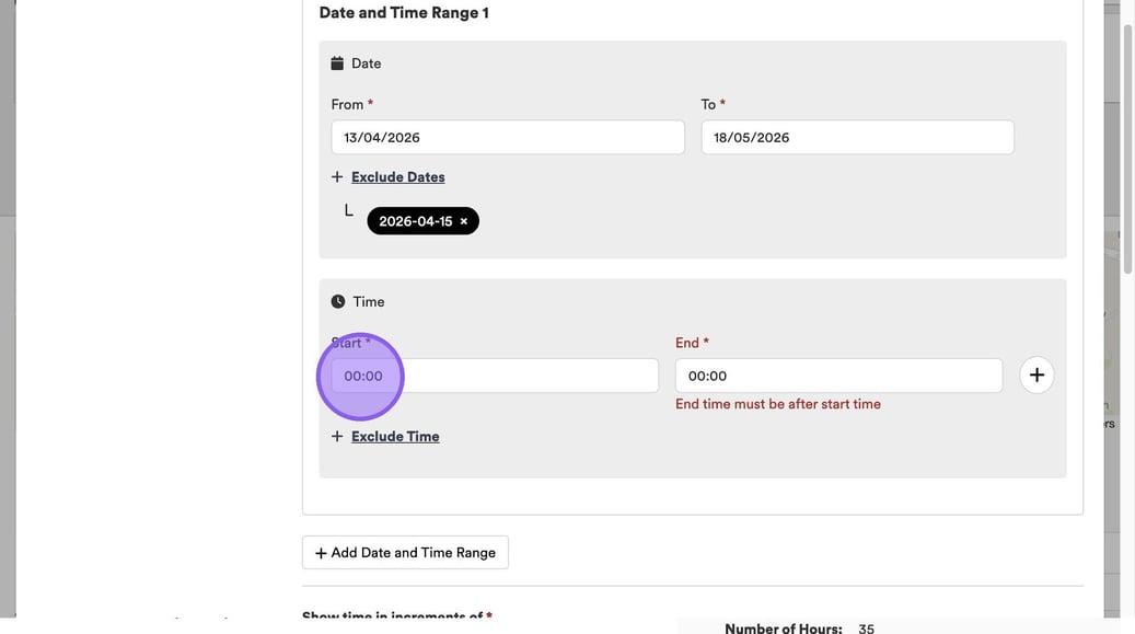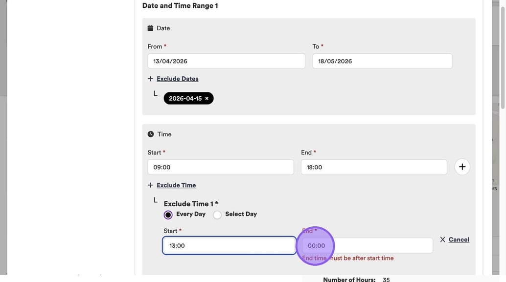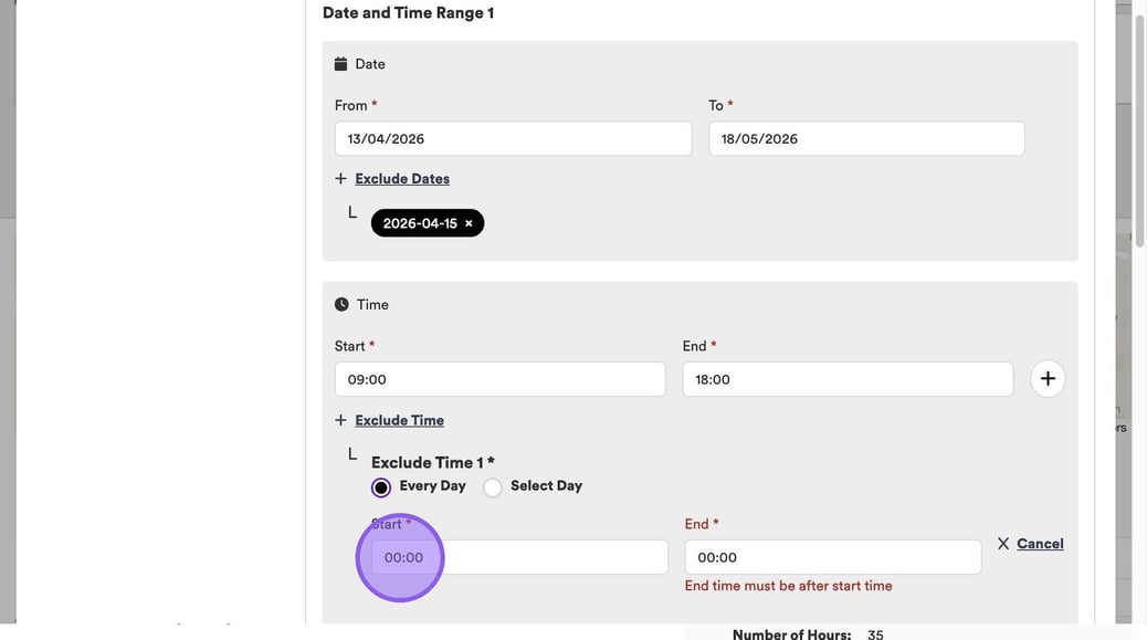 To set your excluded time, repeat the same process as setting your start and end time, by clicking this field and typing a time or using the arrows.