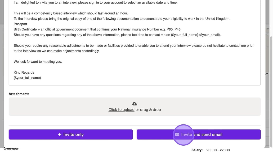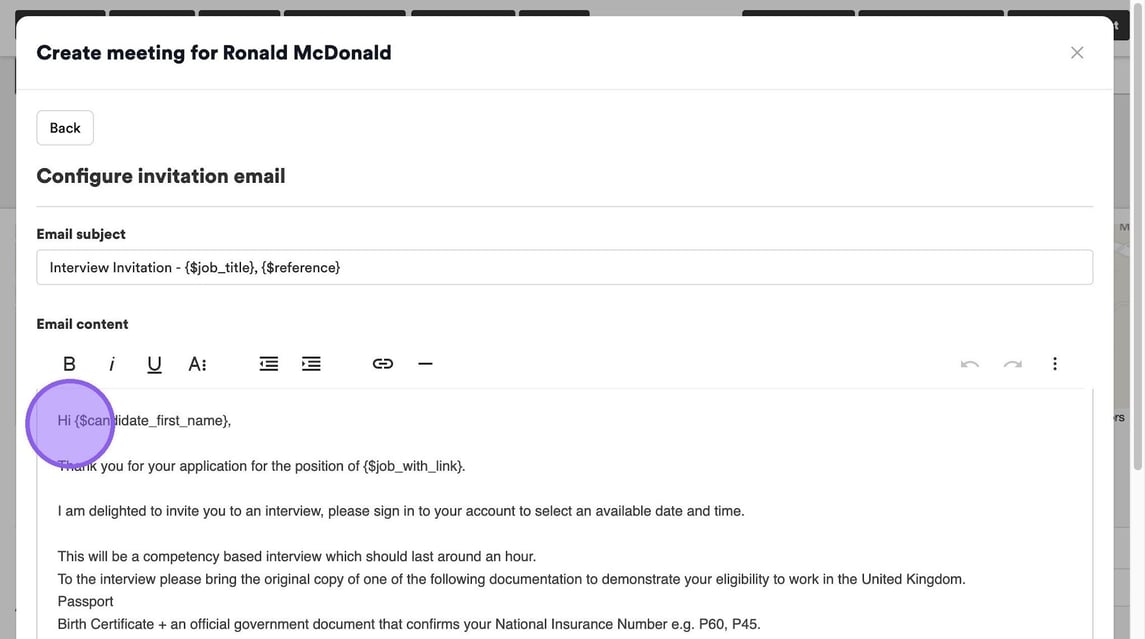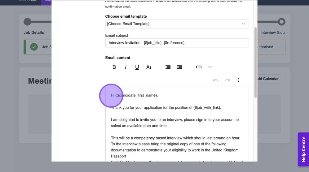 You will now be taken to the following page, where you will see an email template that will be sent to the candidate.