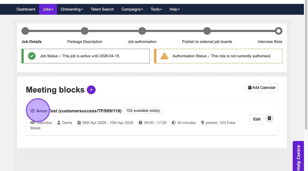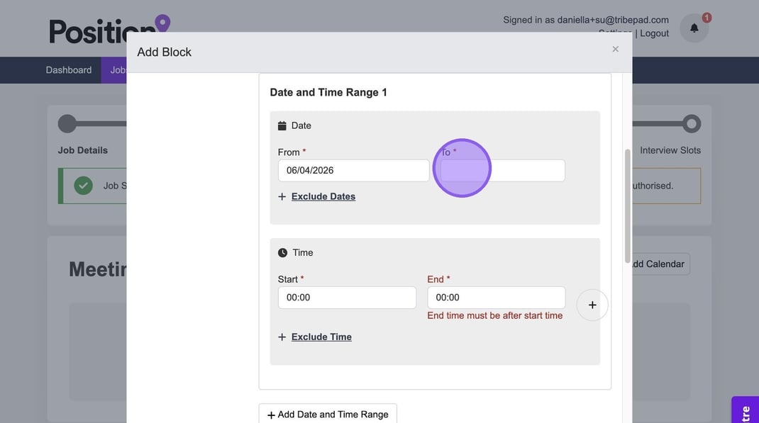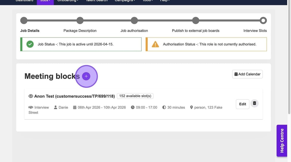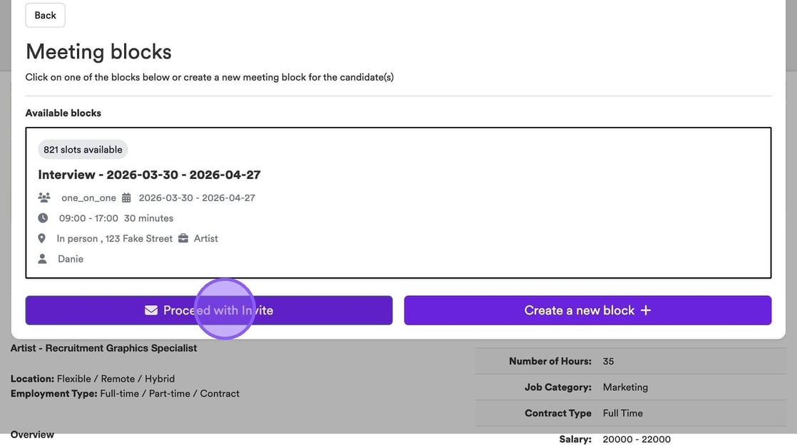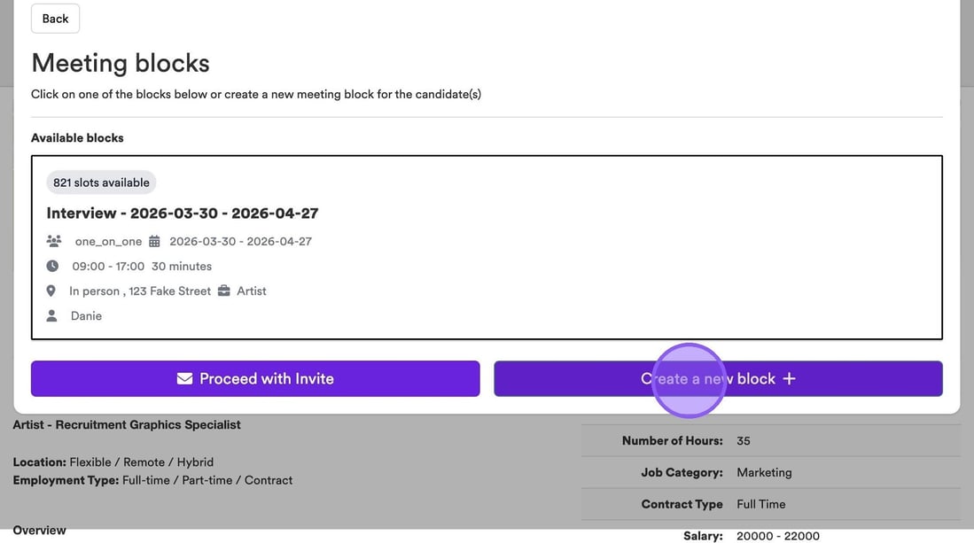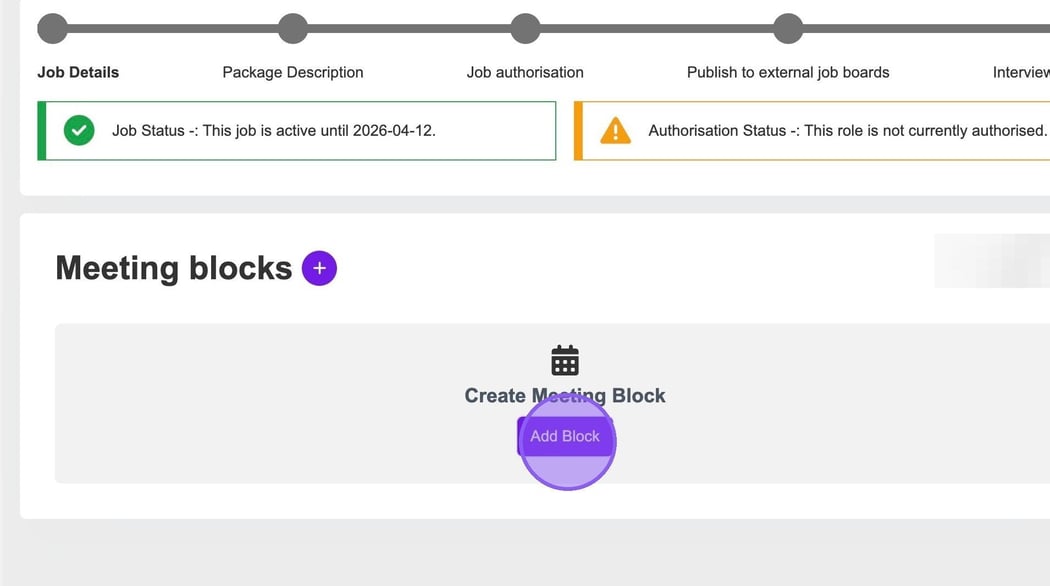 There is also the ability to create another block if needed, using the purple plus icon. If you do not need to make any further changes you have completed the process and set up your interview slots.