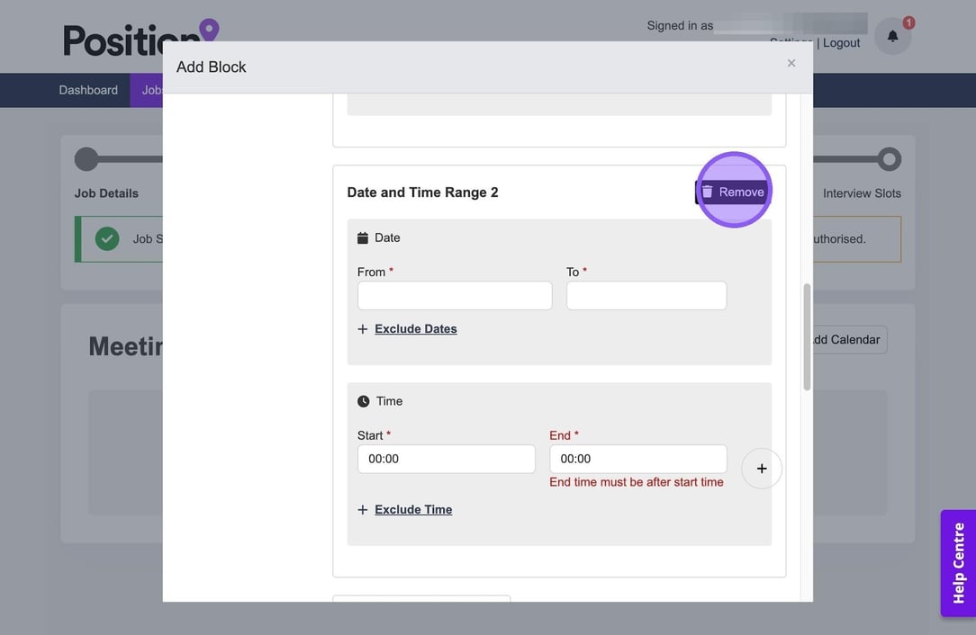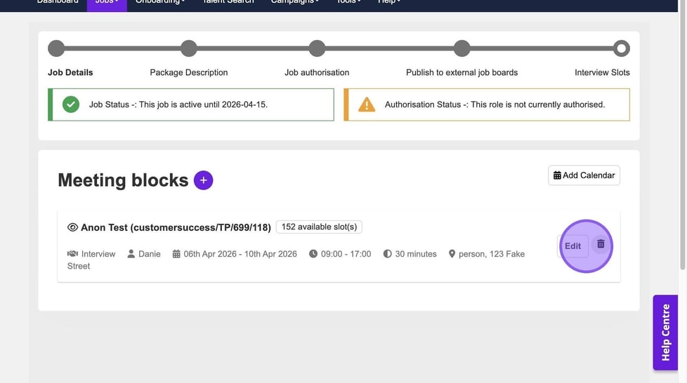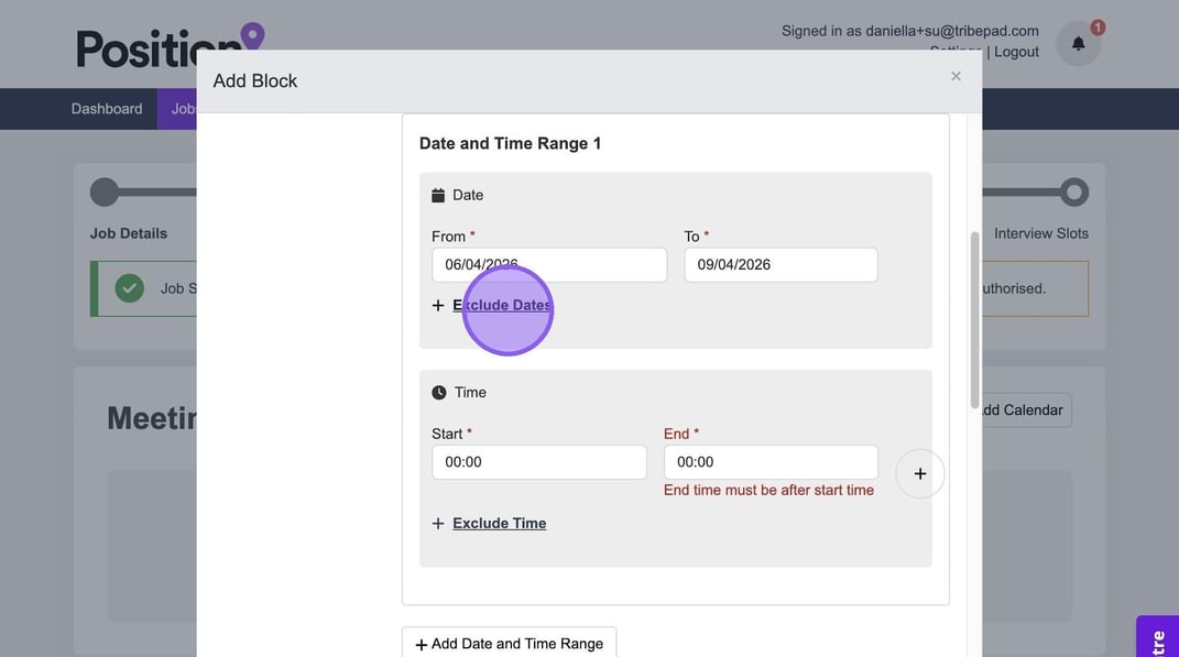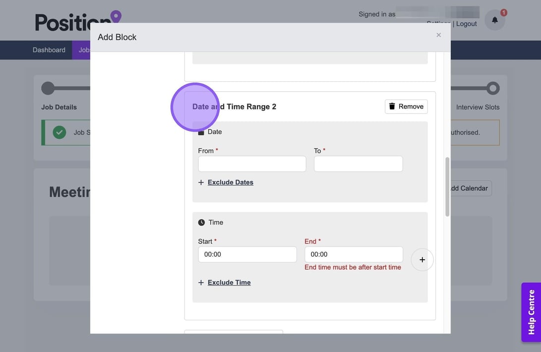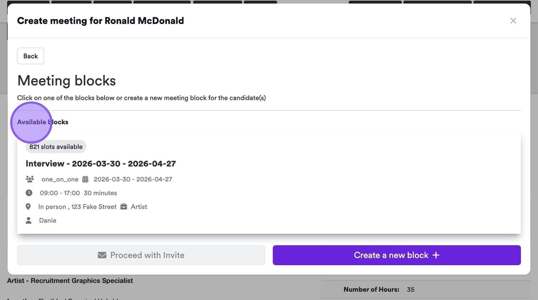 There is also the ability to create another block if needed, using the purple plus icon. If you do not need to make any further changes you have completed the process and set up your interview slots.