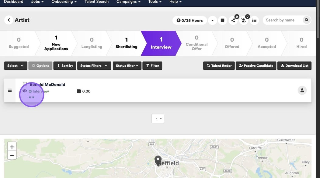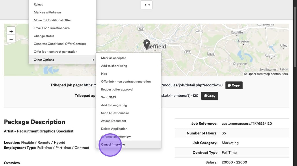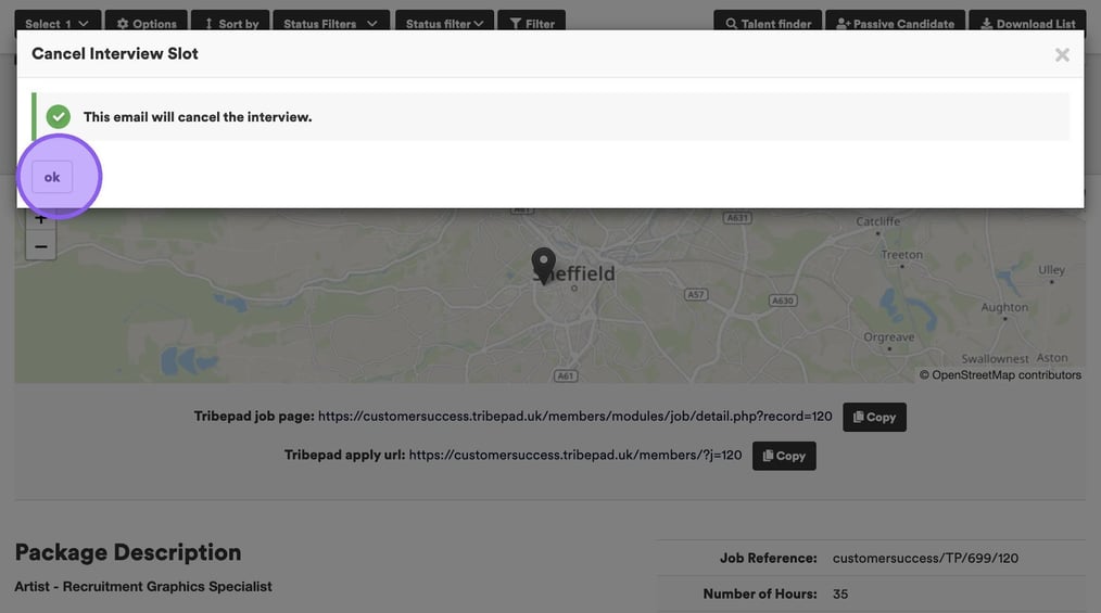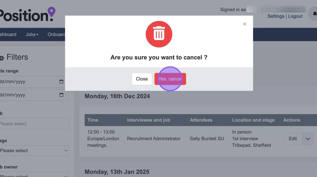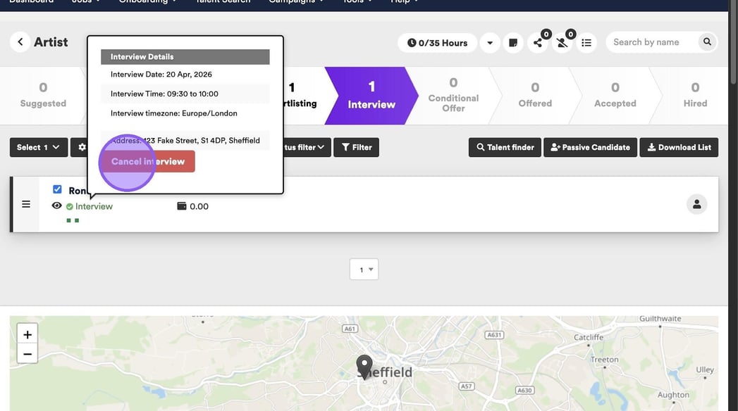 You can also cancel an interview from within a job. To do this, hover over the interview details under the candidates name.