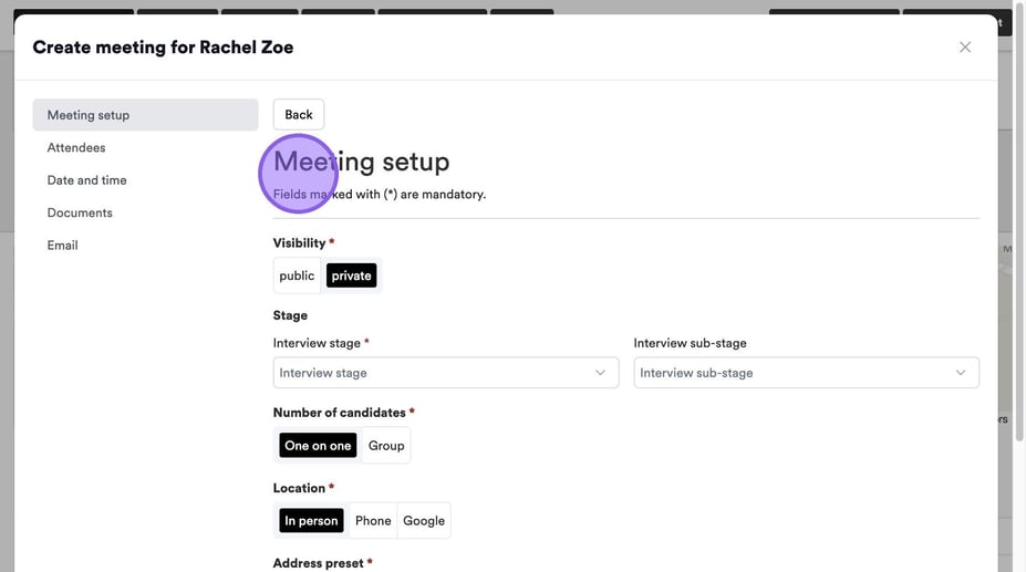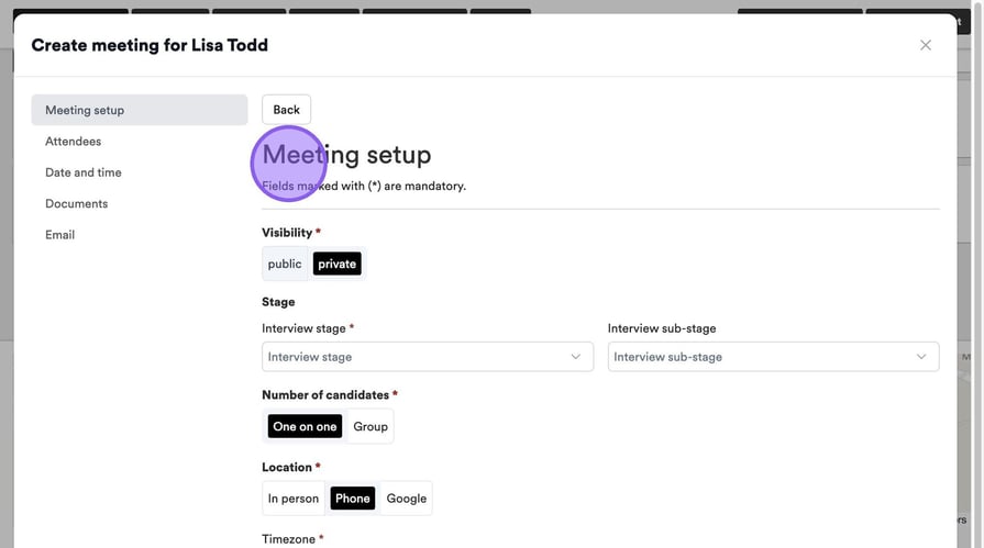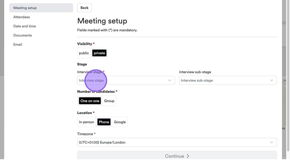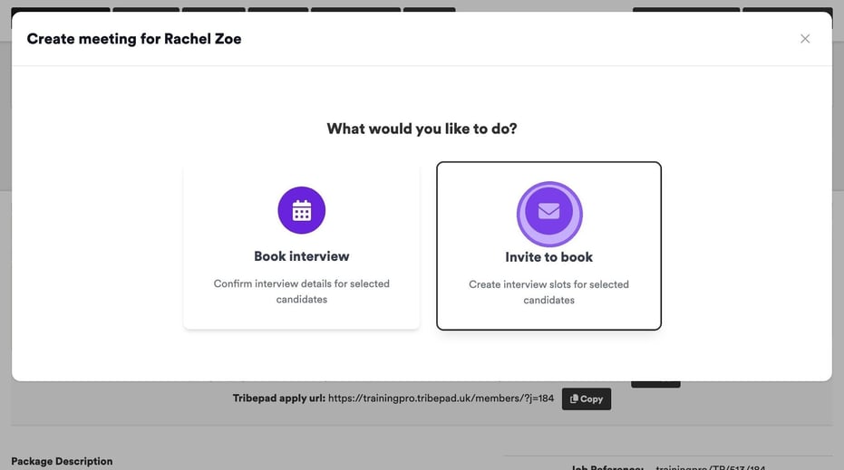 Finally, you can choose what kind of interview you wish to book for the candidate.