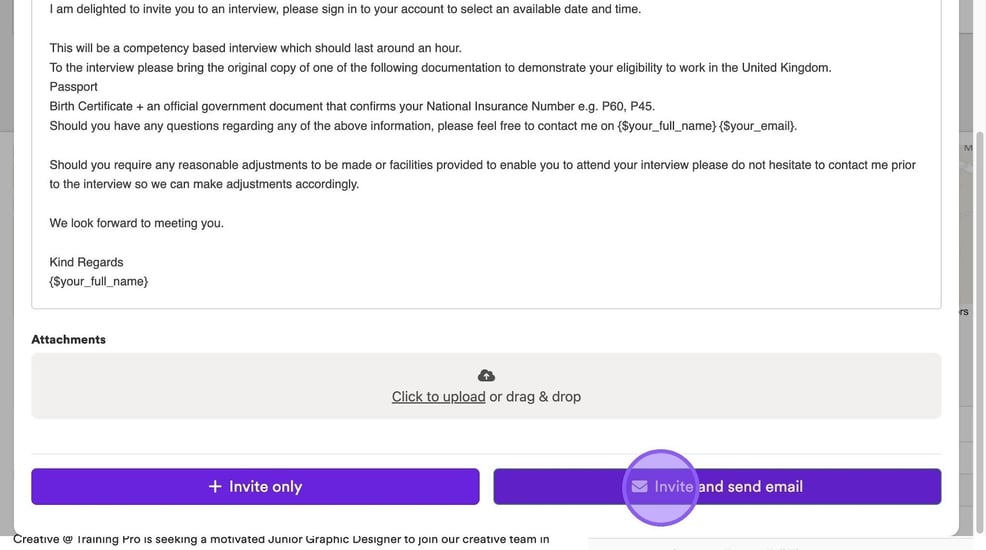 Once you are happy with your email, click "Invite and send email". You also have the option to simply "Invite only".