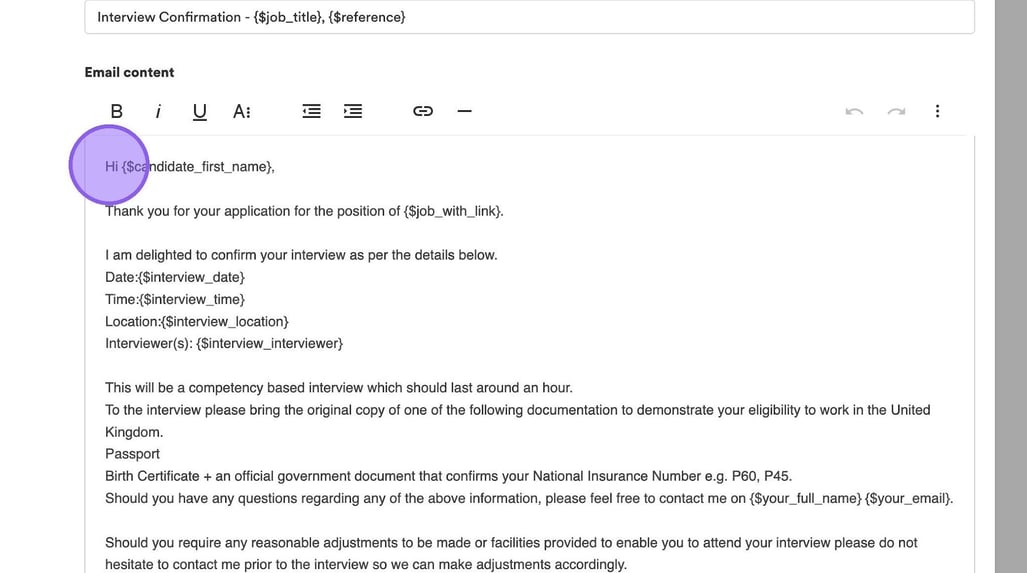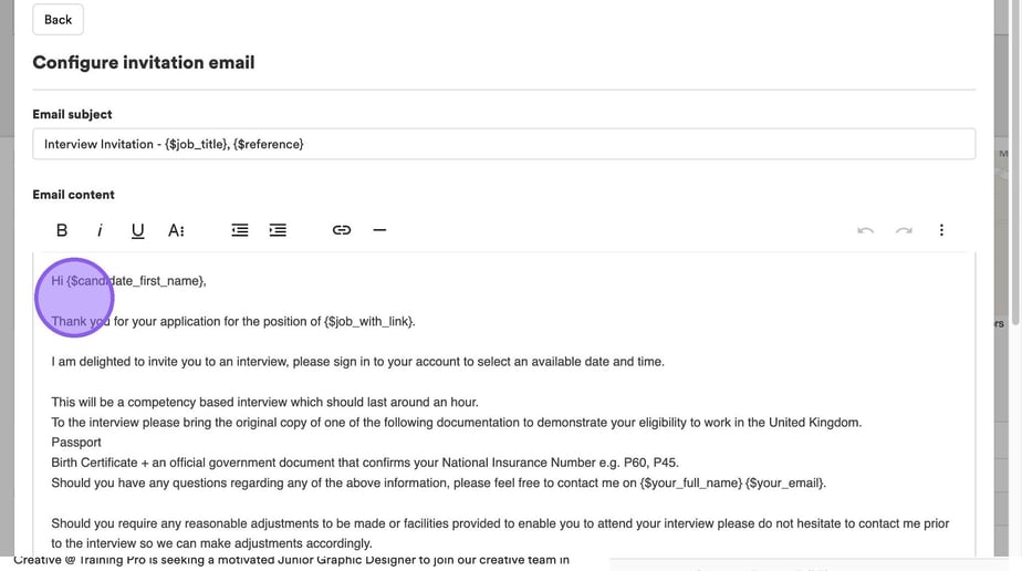 You will now be taken to the following page, where you will see an email template that will be sent to the candidate.