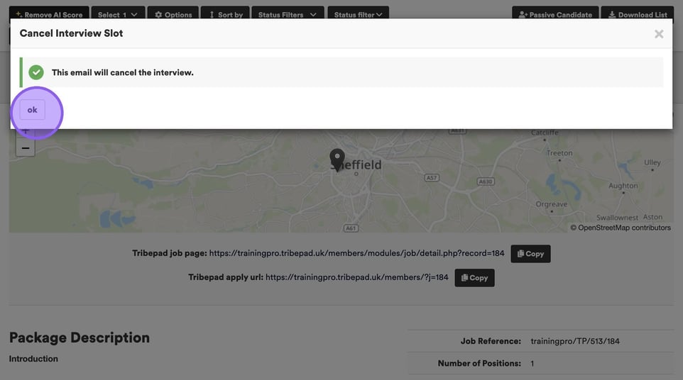 Now click the "Send Interview Cancellation" button.