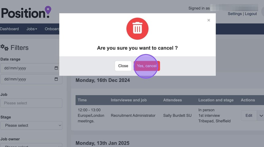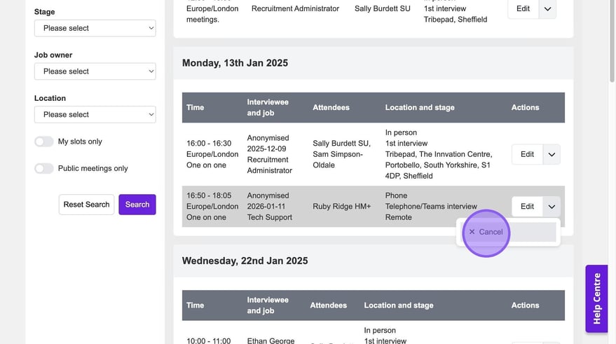 If needed you can also cancel interviews, to do this click here.