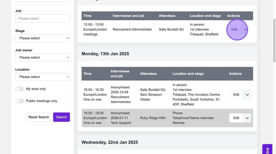 You have the option to edit any of your booked interviews by clicking the "Edit" button.