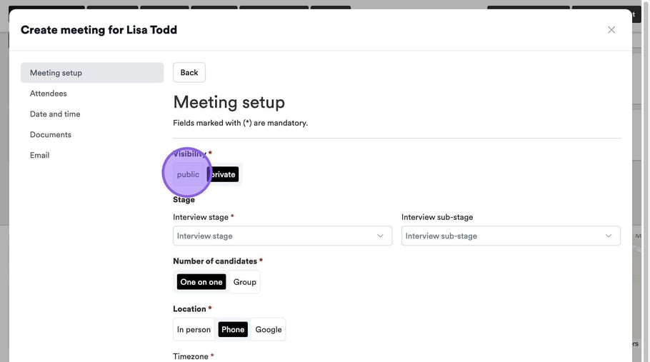 To get started, set your visibility. This refers to how you would like the interview to appear in your calendar.