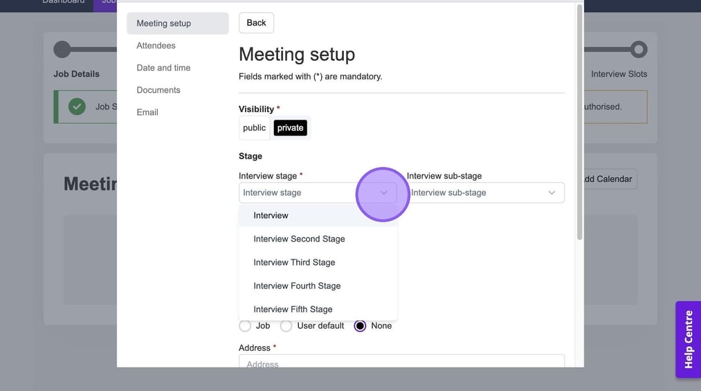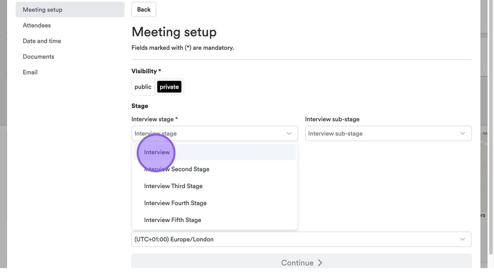 Now choose your Interview Stage, by selecting from the drop-down menu.