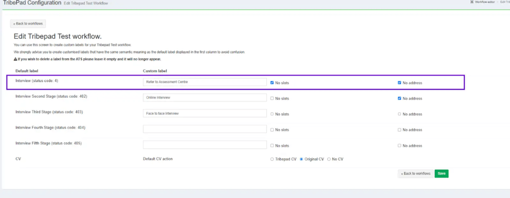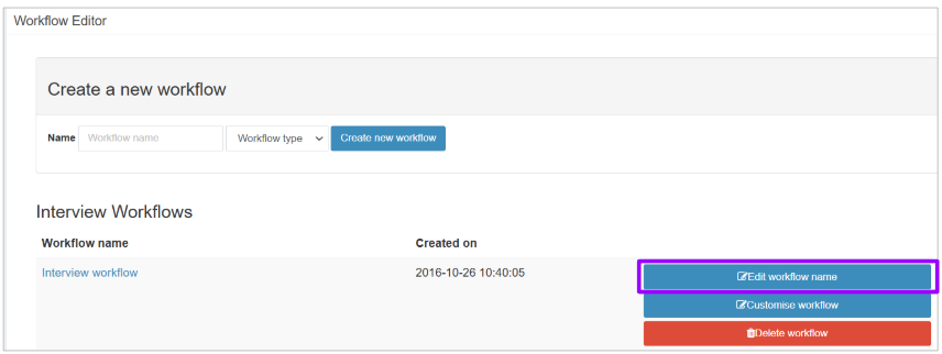 If you would like to change the names of your interview stages in your platform, you can do this via the ‘Workflow Editor’ drop-down under ‘Platform Configuration’ in Manage.