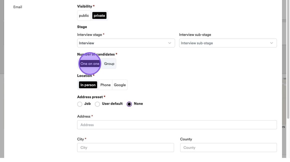 Next, choose if your interview is for a single candidate, i.e. a one-on-one (or panel-style) interview, or if it is for a group, e.g. an assessment centre.