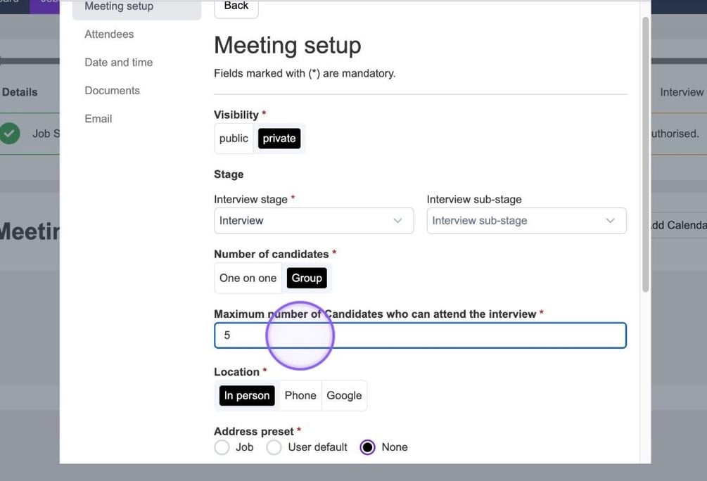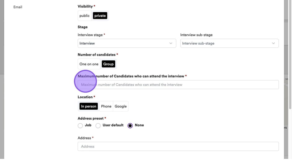 If you click on "Group" you will now see the option to set the maximum number of candidates who can attend the interview. To do this, simply click in the box and type the relevant number.