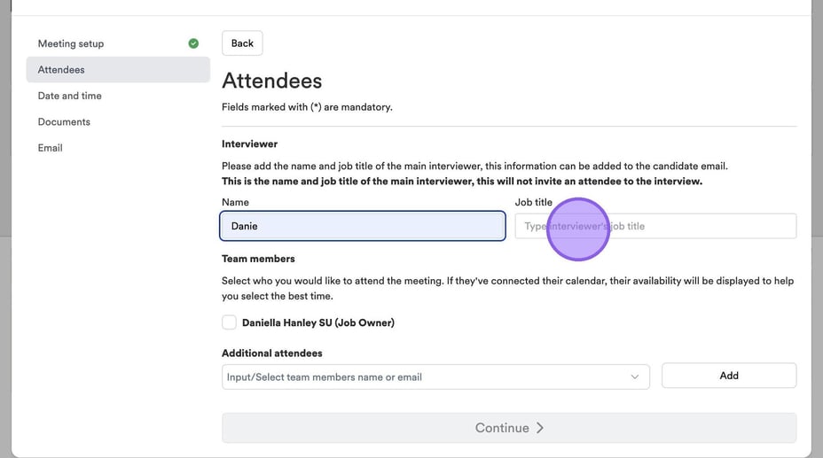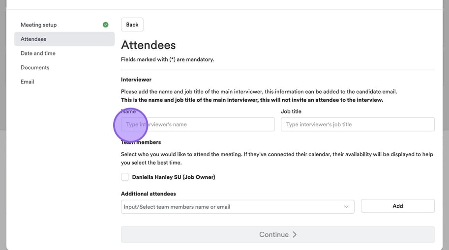 You will now be taken to the "Attendees" part of this process. To get started type in the name of who will be conducting the interview.