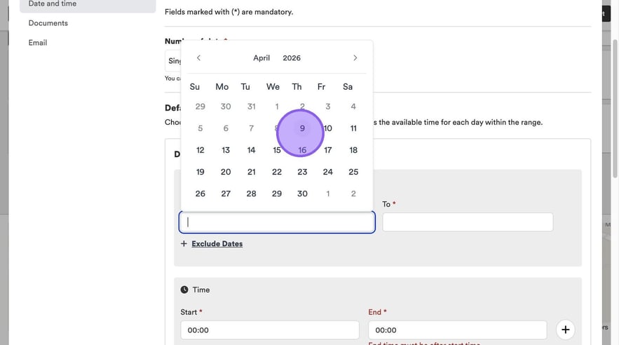 Once again, your screen will refresh and you will be moved onto the next tab - ‘Date and Time’. The first section to complete is the number of slots you would like to set up.