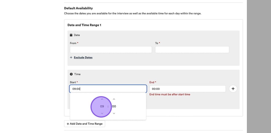 Repeat this step to set your end time.