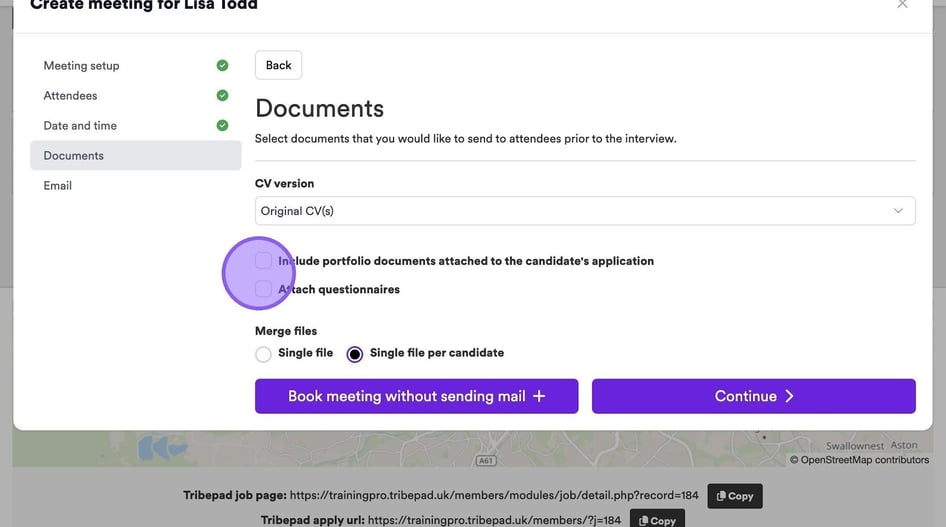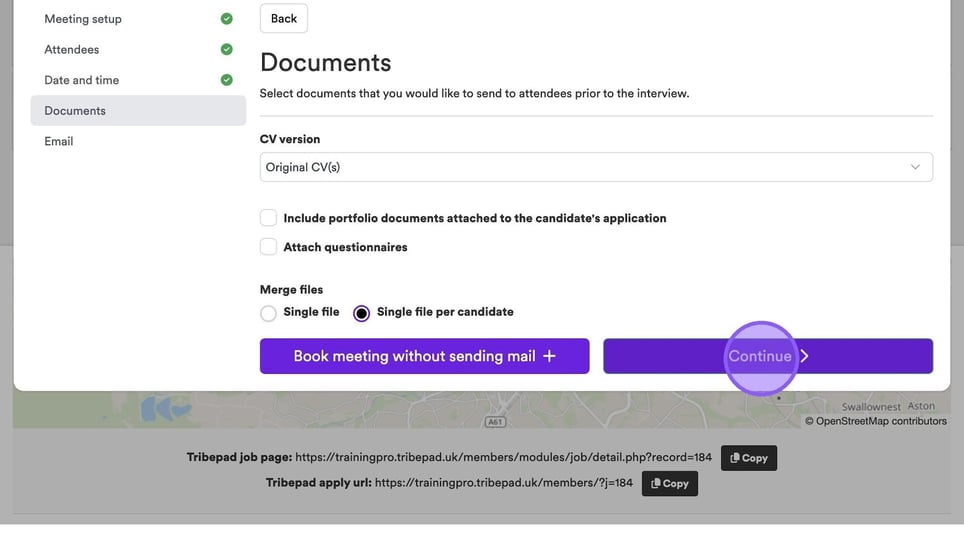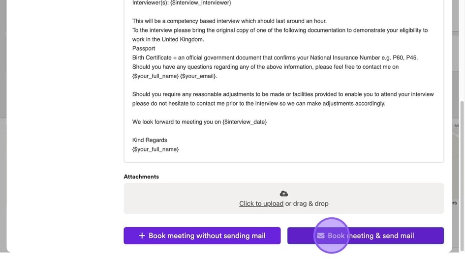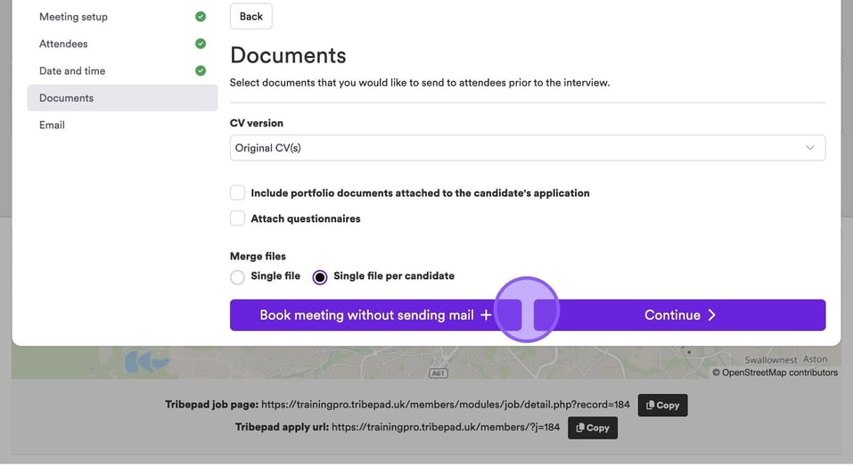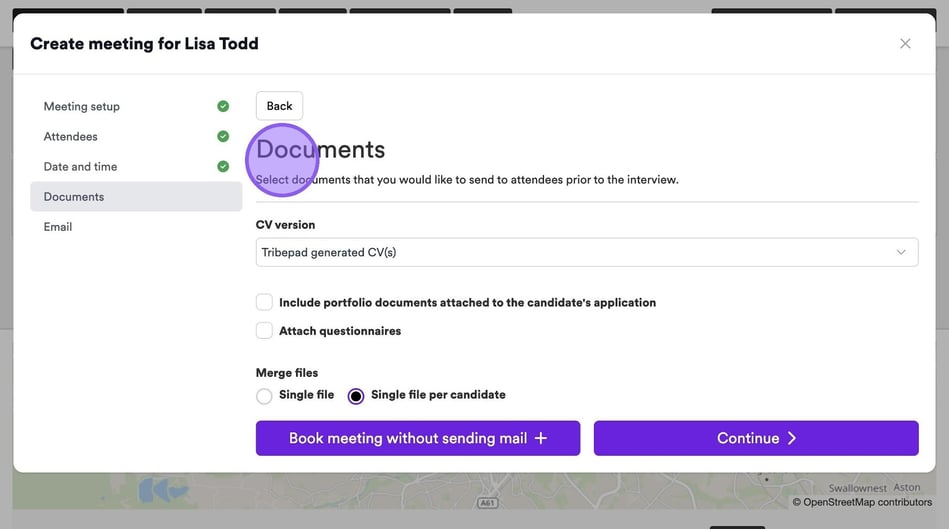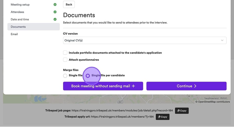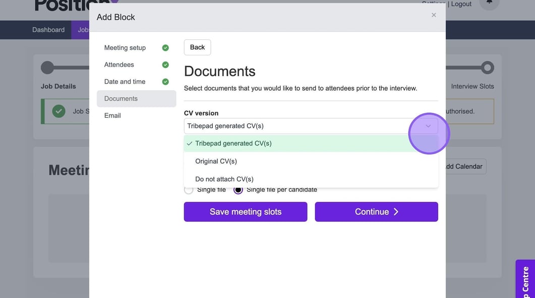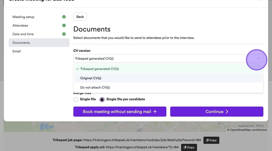 If you would like to send a candidate's CV to attendees prior to an interview, click the drop-down menu here and select the relevant option from the list.
