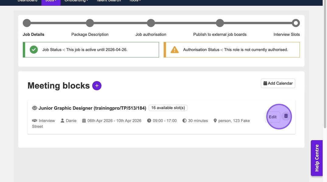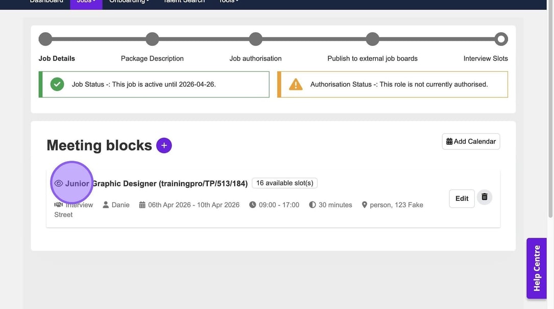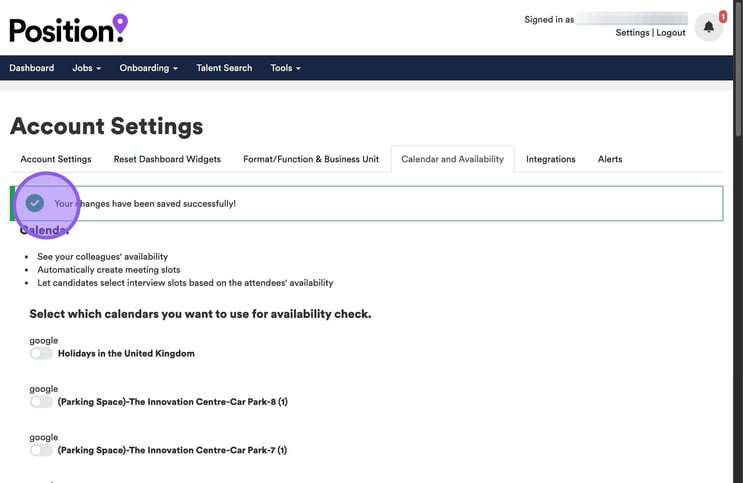 Once updated, you will appear as available for interview bookings within the ATS.