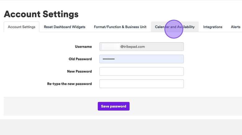 From the account settings page, click "Calendar and Availability".