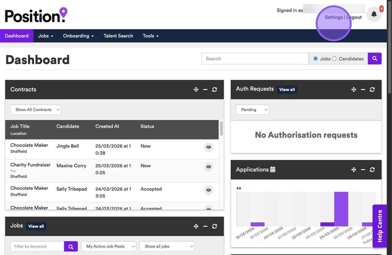 From your dashboard, click on settings.