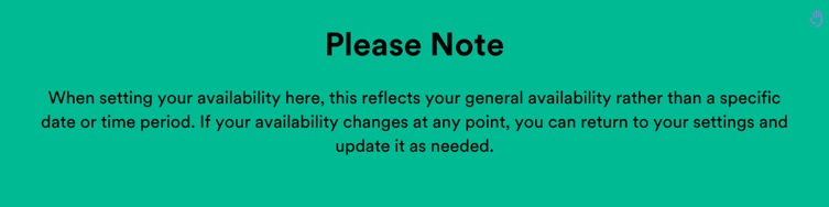 We also recommend setting availability at an organisation-wide level. This can be configured in Manage and is a self-serve option, allowing you to update it whenever needed.