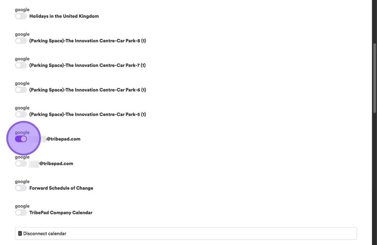 You will now be taken to a list of other calendars that you have access to. In order to link those, you simply need to click on the relevant toggle next to each one.