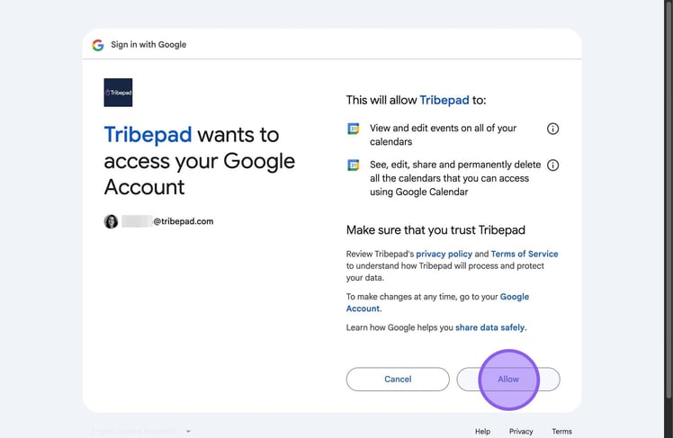 To finish linking your calendar, click "Allow".