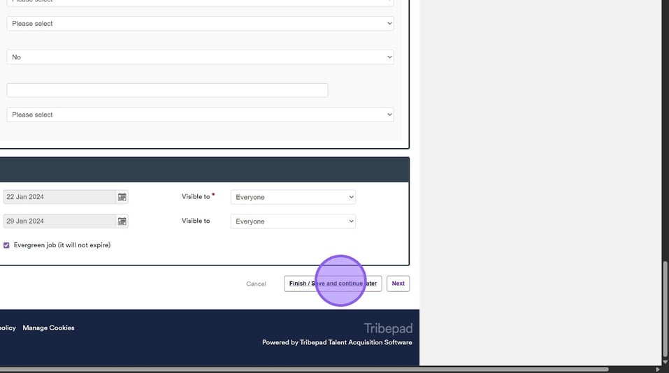 Once you are happy, scroll to the bottom of the page and click "Finish / Save and continue later".