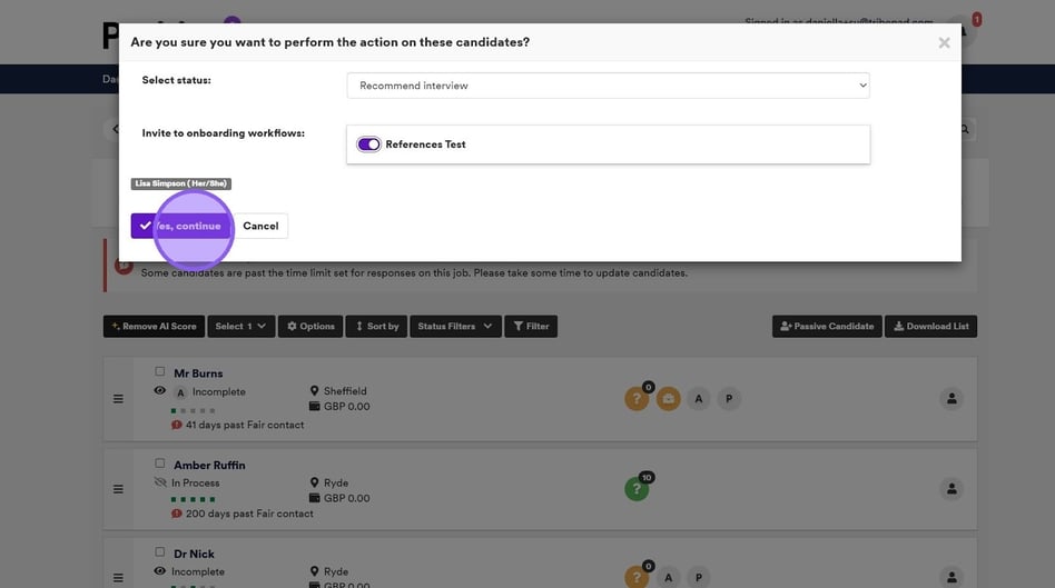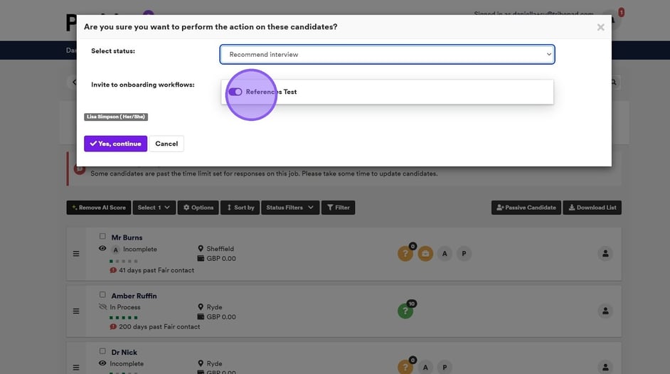 Make sure to invite your candidate to your onboarding workflow, in this example we are going to trigger reference checks.