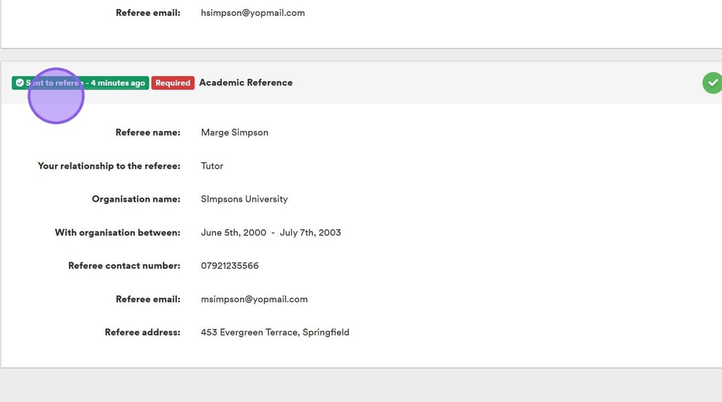 You will now see this text change to green, confirming that your reference checks have been successfully sent to the listed referees.