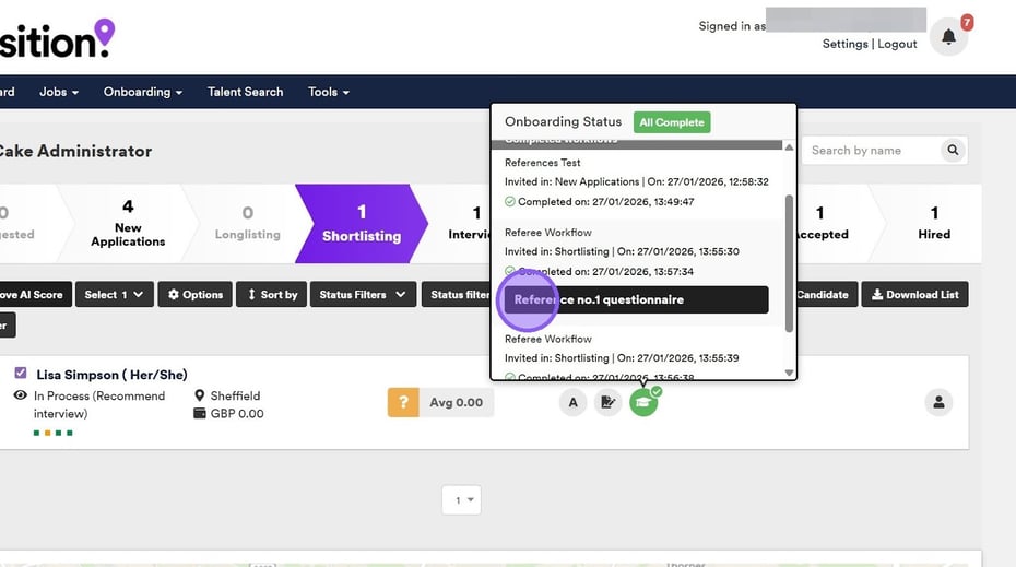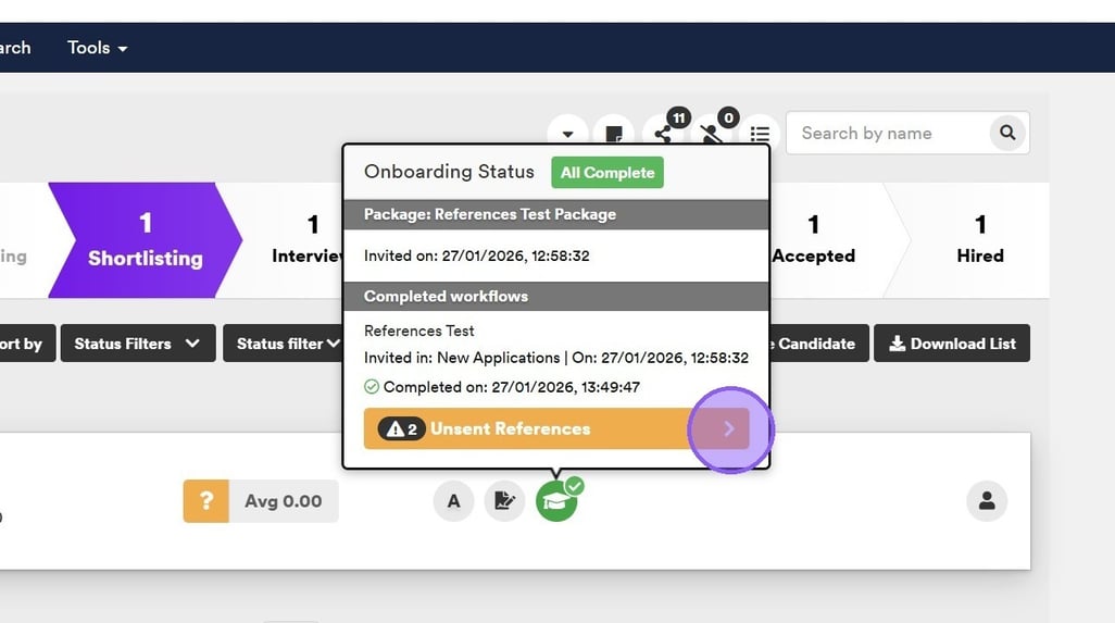 Once a candidate has submitted their reference checks, head to the relevant job.